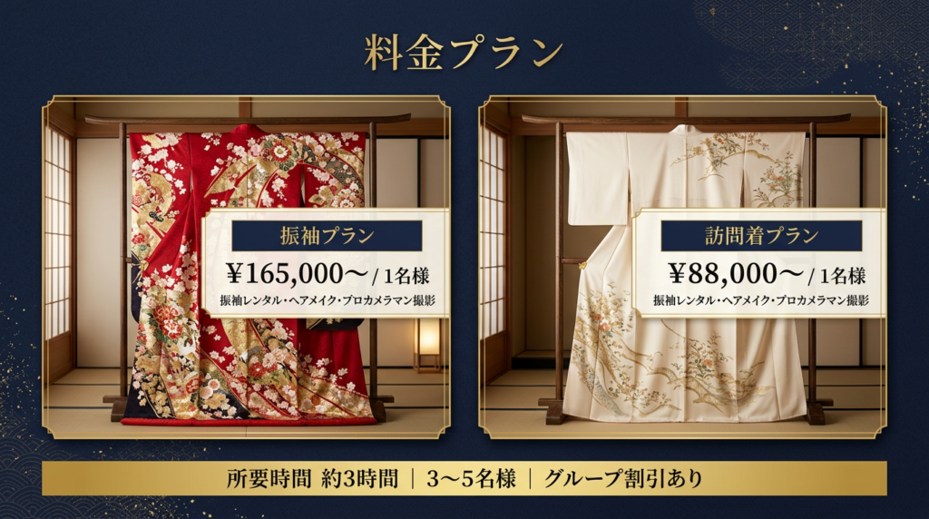 振袖プラン振袖レンタル+ヘアメイク+プロ撮影¥165,000〜